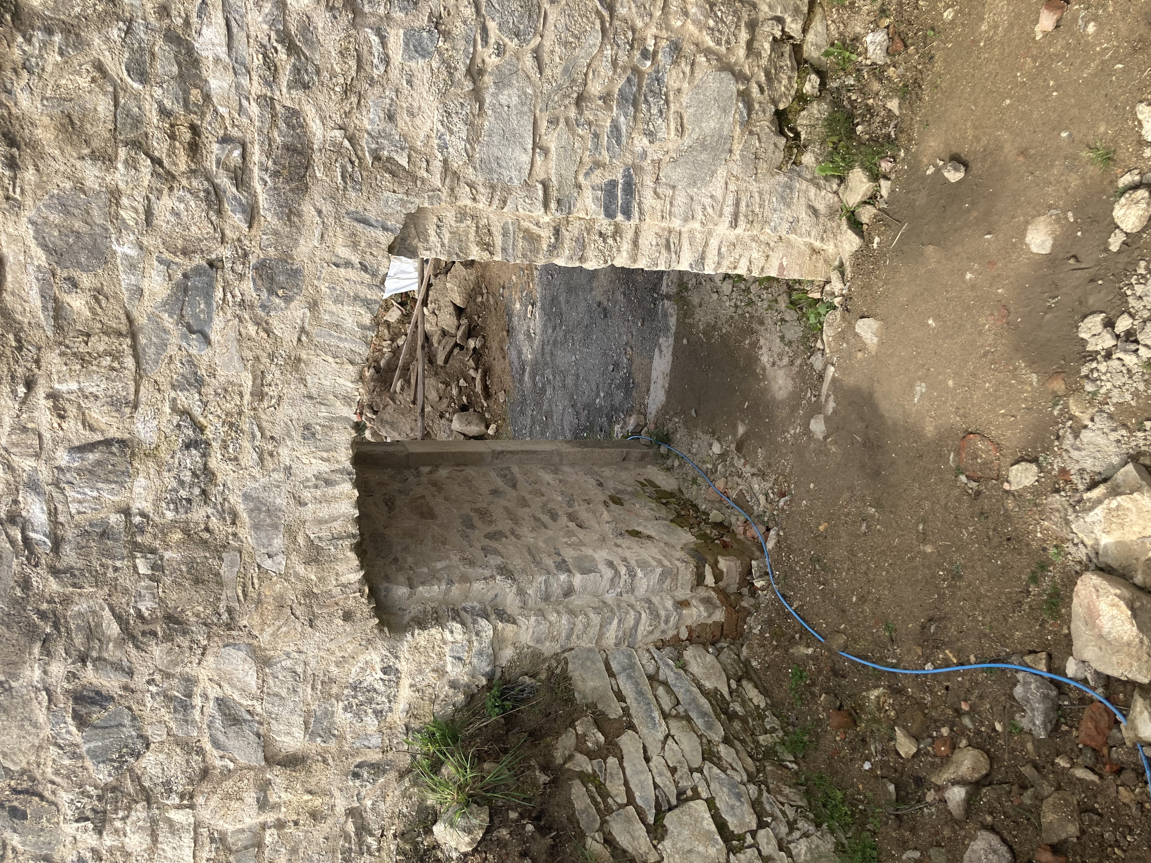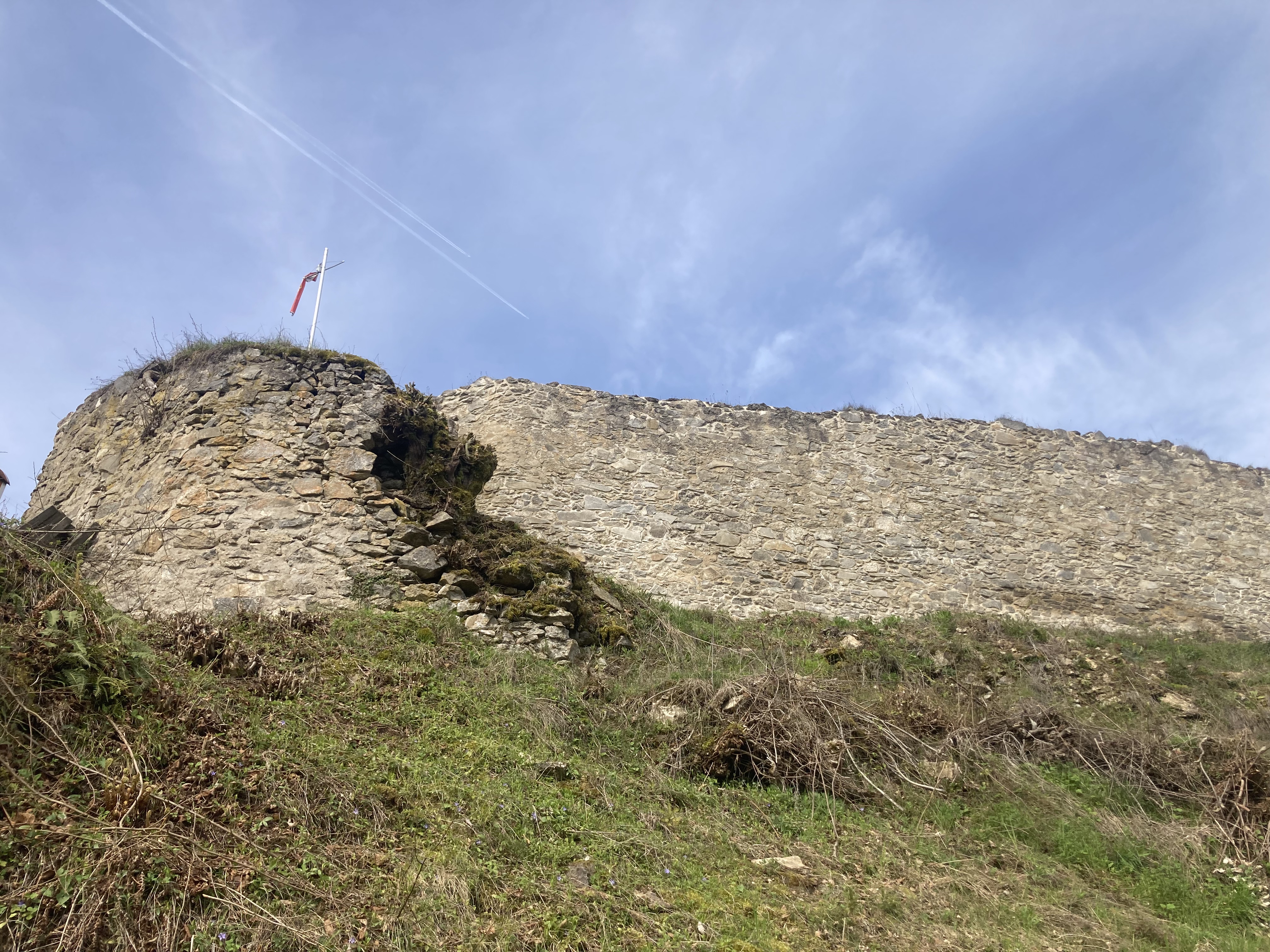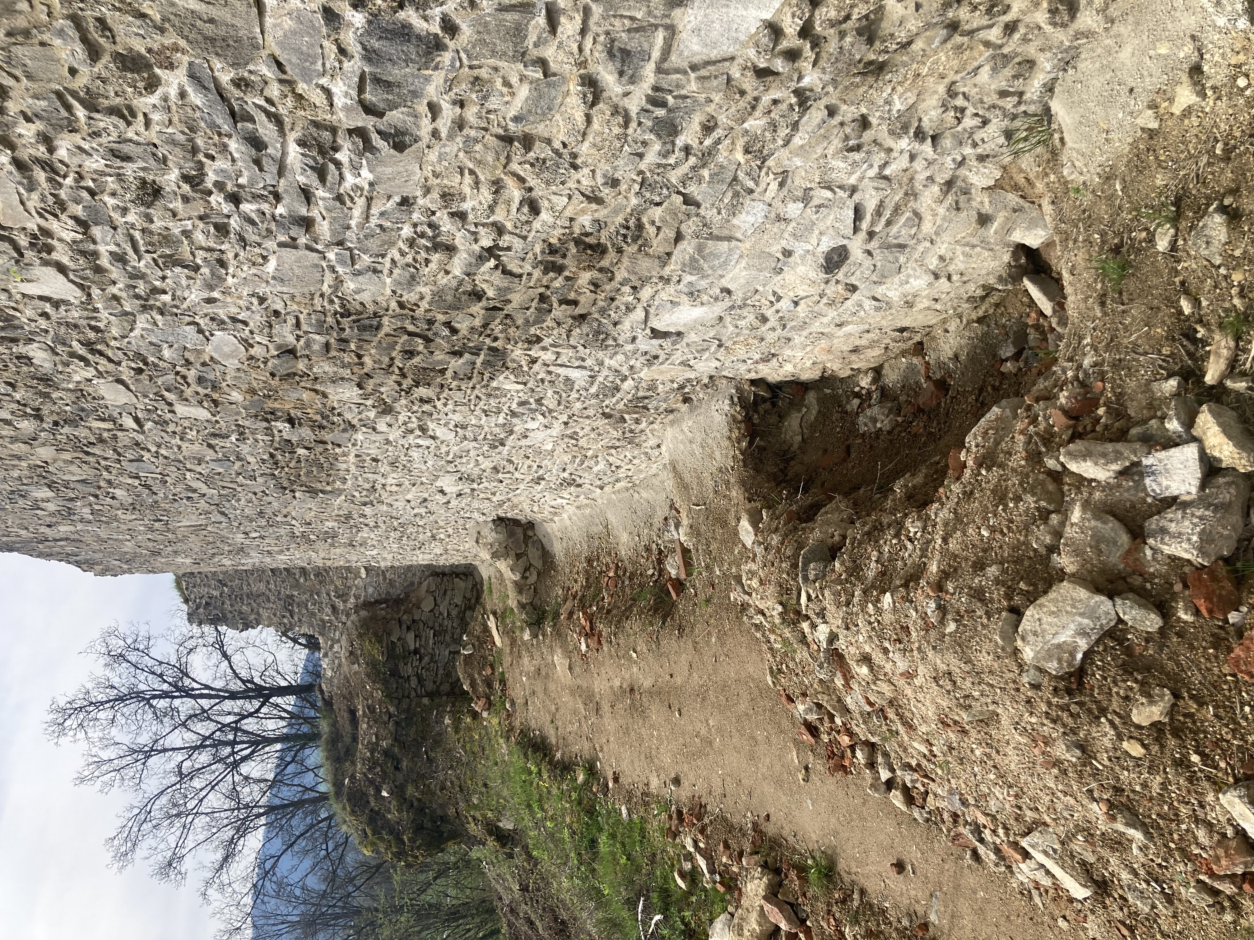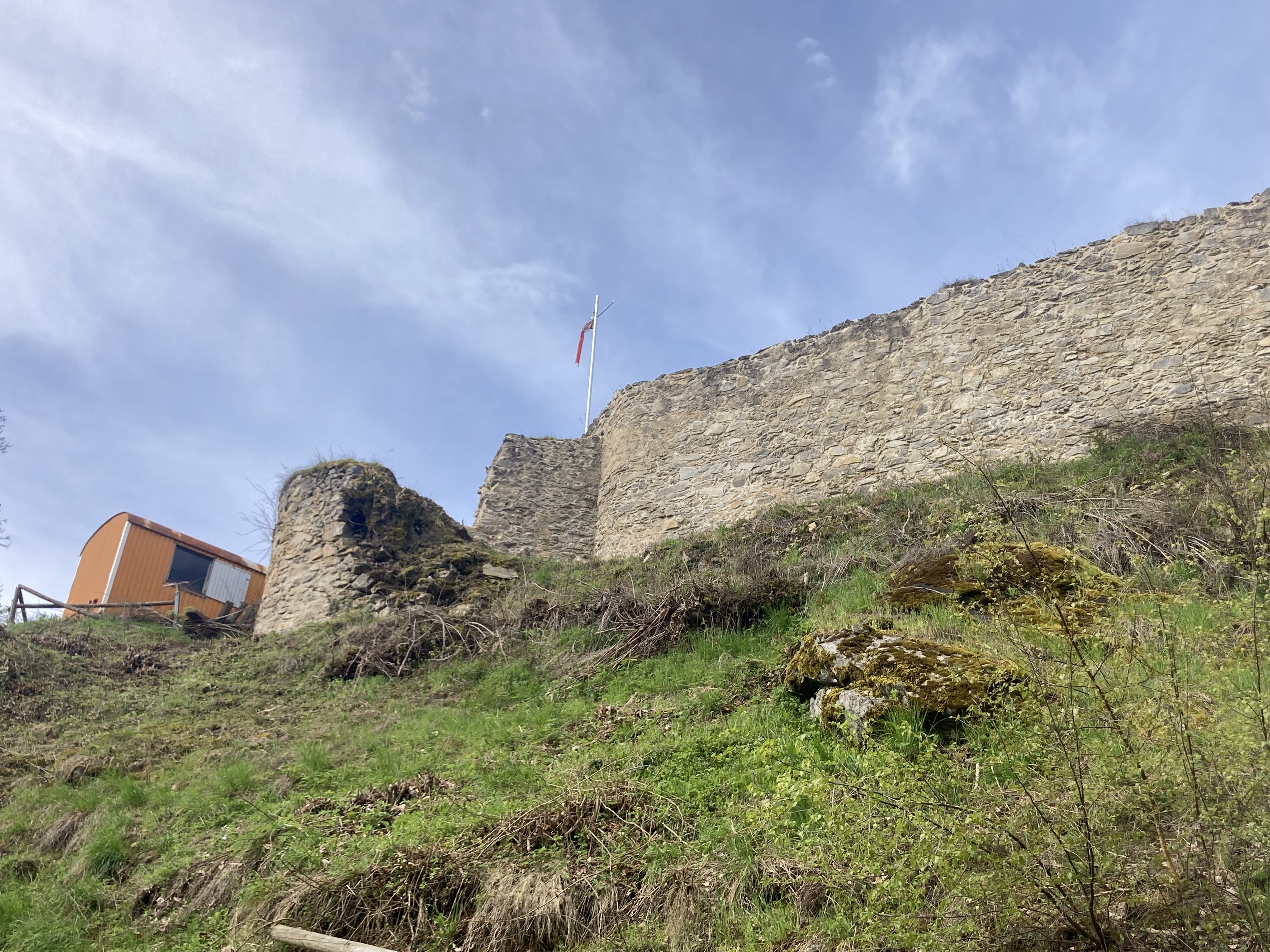 Um das alte Baudach zu entfernen und das neue Schutzdach errichten zu können, musste Platz für einen Mobilkran geschaffen werden. Dazu wurde der Schuttberg bei der Auffahrt zum Dach mit dem Lader, gefahren von Thomas Piller, entfernt.