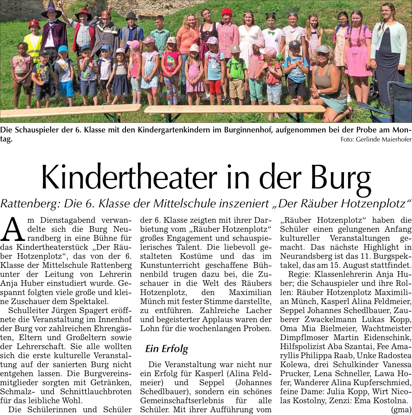 Die Bogener Zeitung berichtete am 23.7.2024 ebenfalls über die Theateraufführung.
