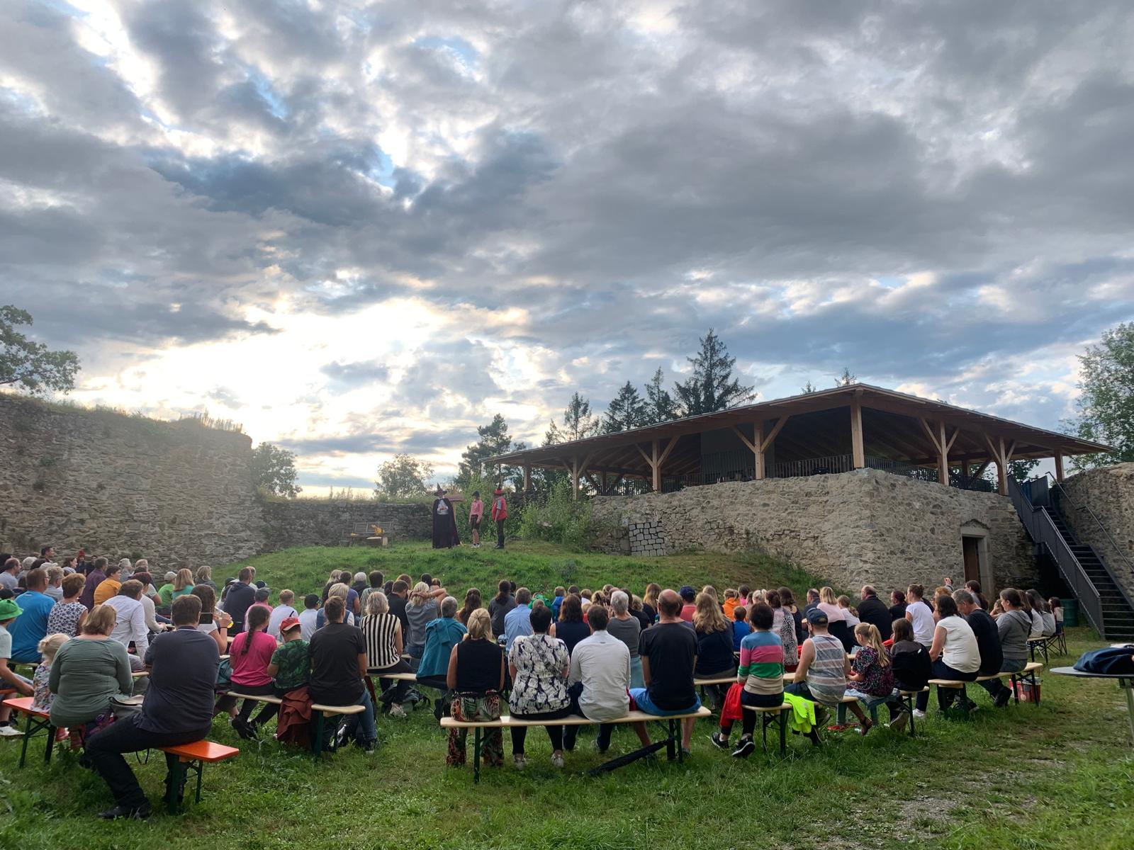 Am Dienstag, 16.07.24, fand die erste Theatervorstellung auf der sanierten Burg Neurandsberg statt. Nach fast 400 Jahren Dornröschenschlaf war die Burg wieder mit Kinderlachen, Applaus und Gesprächen erfüllt.