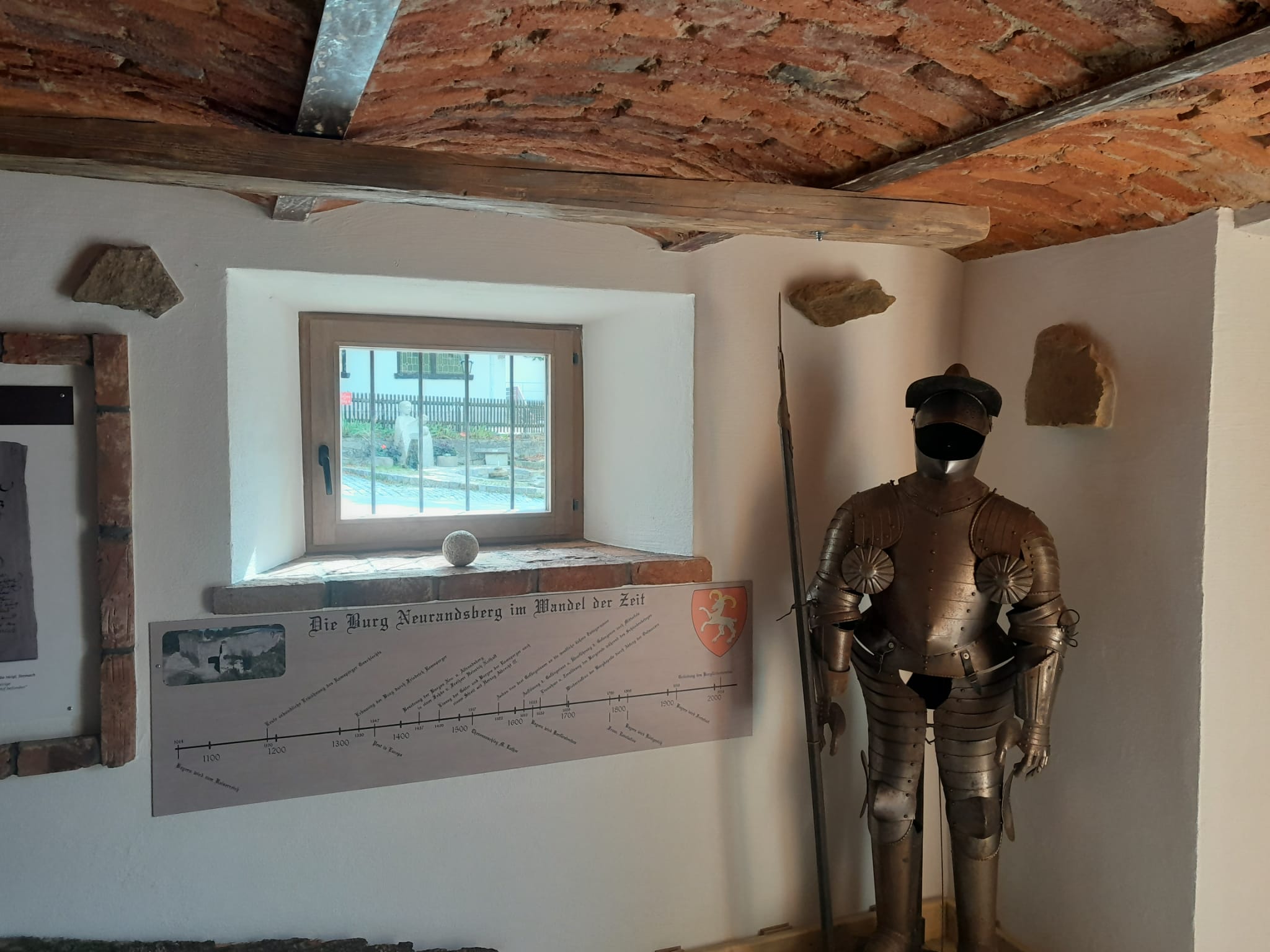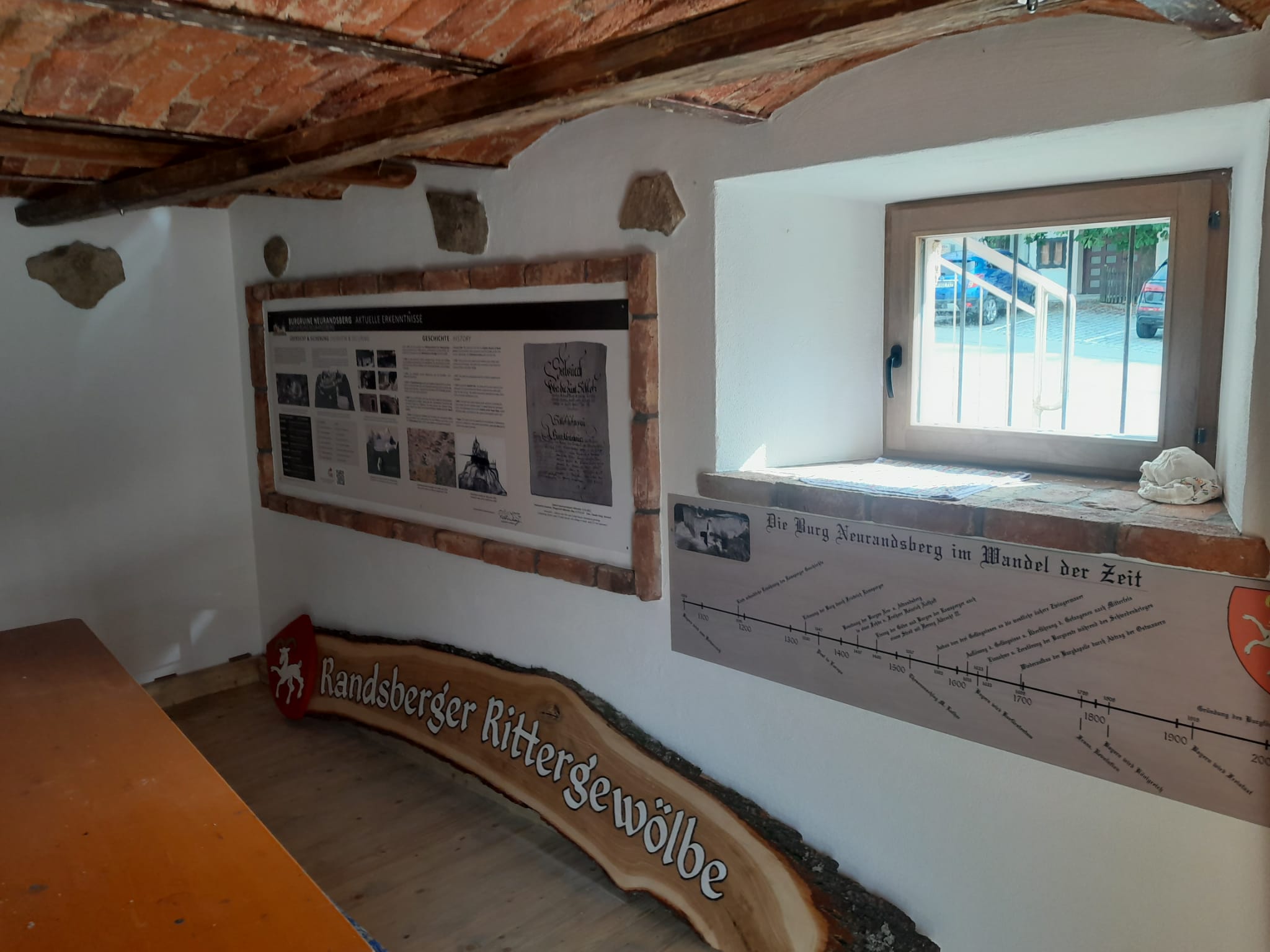 Im Vorraum werden Information zur Geschichte der Burg und der Sanierung durch den Burgverein präsentiert. Im hinteren Raum, unserer Schatzkammer sollen demnächst die Fundstücke der Grabungsarbeiten präsentiert werden. Momentan werden diese noch archäologisch untersucht. Sobald diese abgeschlossen sind, werden die Gegenstände in Vitrinen präsentiert.